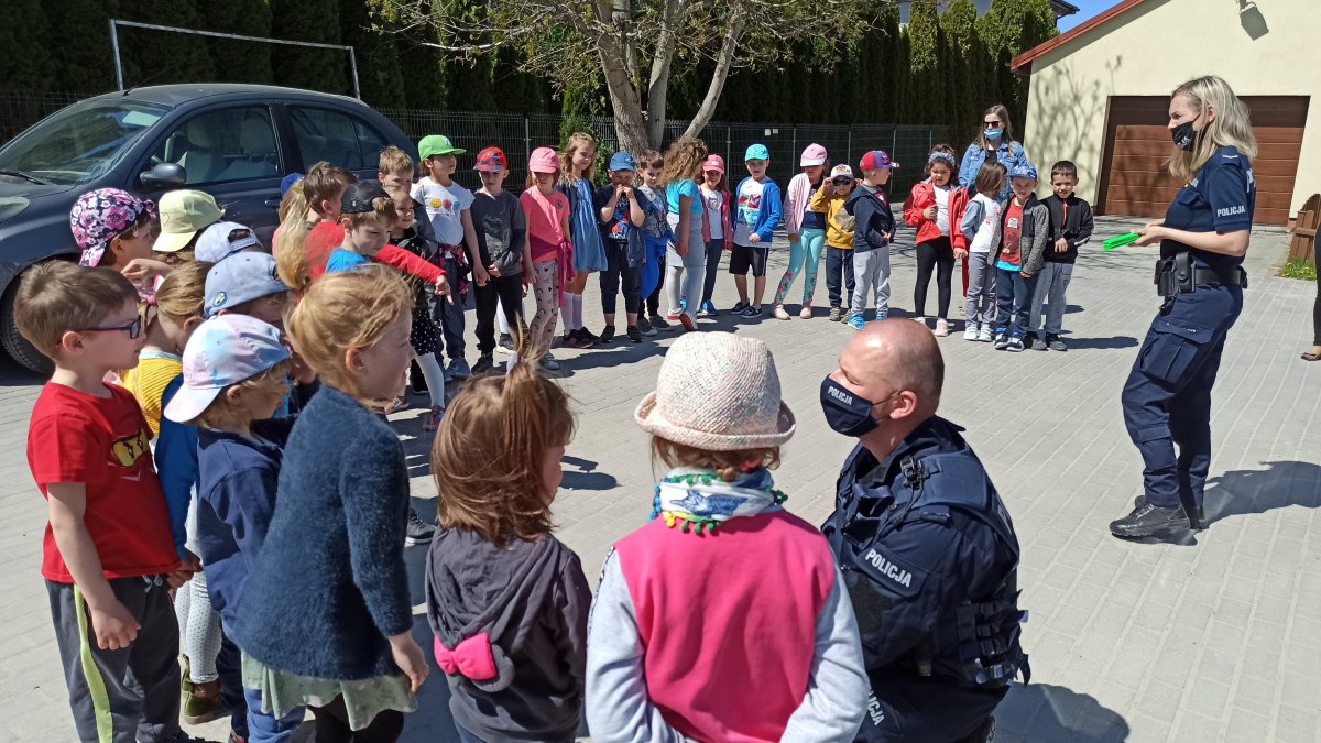 Policjanci z Komendy Powiatowej Policji w Świdniku realizując działania profilaktyczne przeprowadzili spotkanie w dwóch grupach w przedszkolu przy Alei Lotników Polskich w Świdniku. Podczas pogadanki z maluchami na świeżym powietrzu omówili zasady bezpieczeństwa dzieci w przedszkolu, w domu i podczas zabaw na dworze.