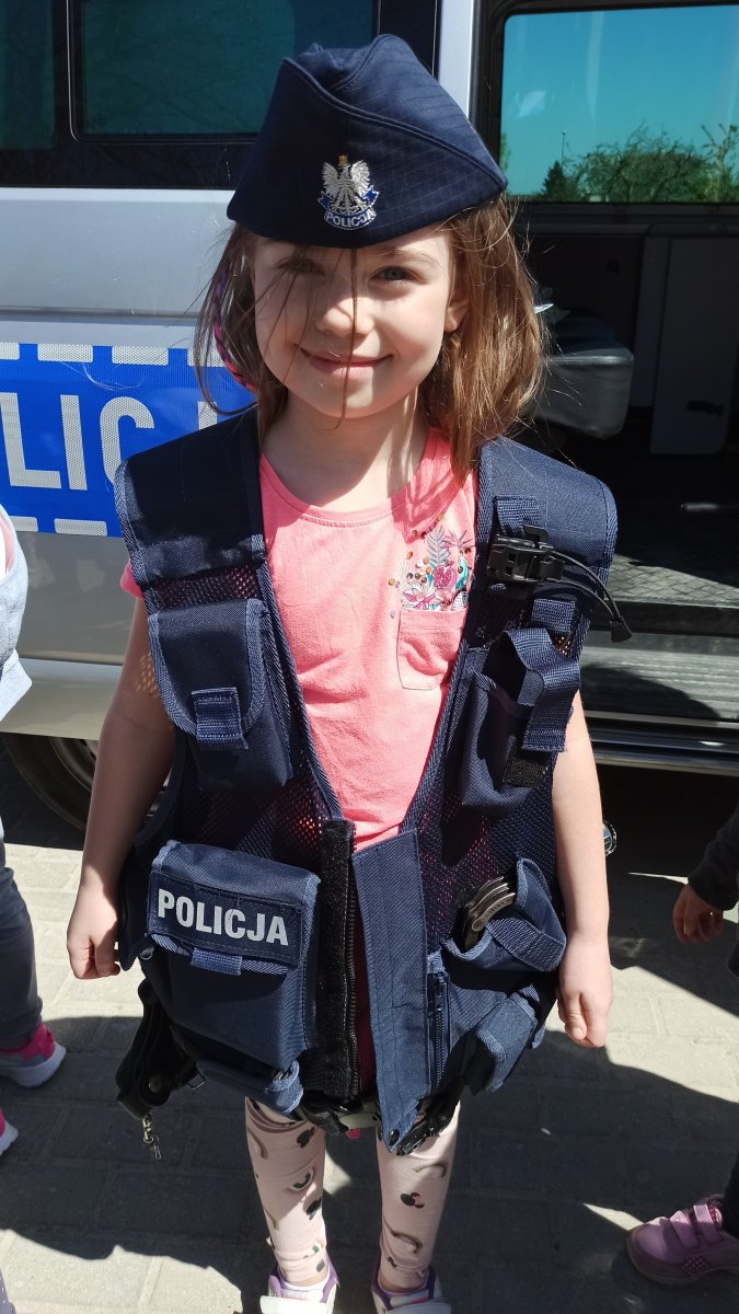 Dzieci zostały zapoznane z zagadnieniem odblasków oraz ważnej roli jaką mają za zadanie spełniać. Poznały również na czym polega praca w policji i jakie zadania czekają na mundurowych podczas codziennej służby. Miały okazję poprzymierzać elementy policyjnej odzieży, zasiąść w radiowozie oraz z bliska obejrzeć jego wyposażenie.