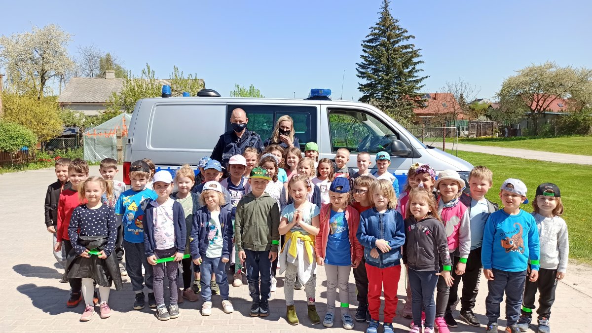 Na koniec dzieciom wręczono elementy odblaskowe oraz zapozowały do grupowego, pamiątkowego zdjęcia.
